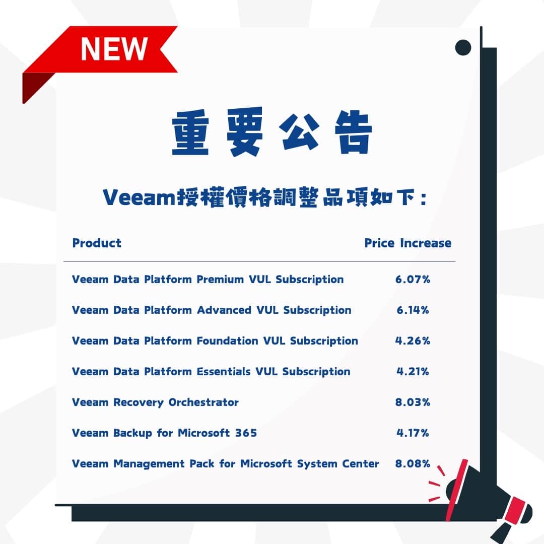 【重要公告】Veeam 漲價通知